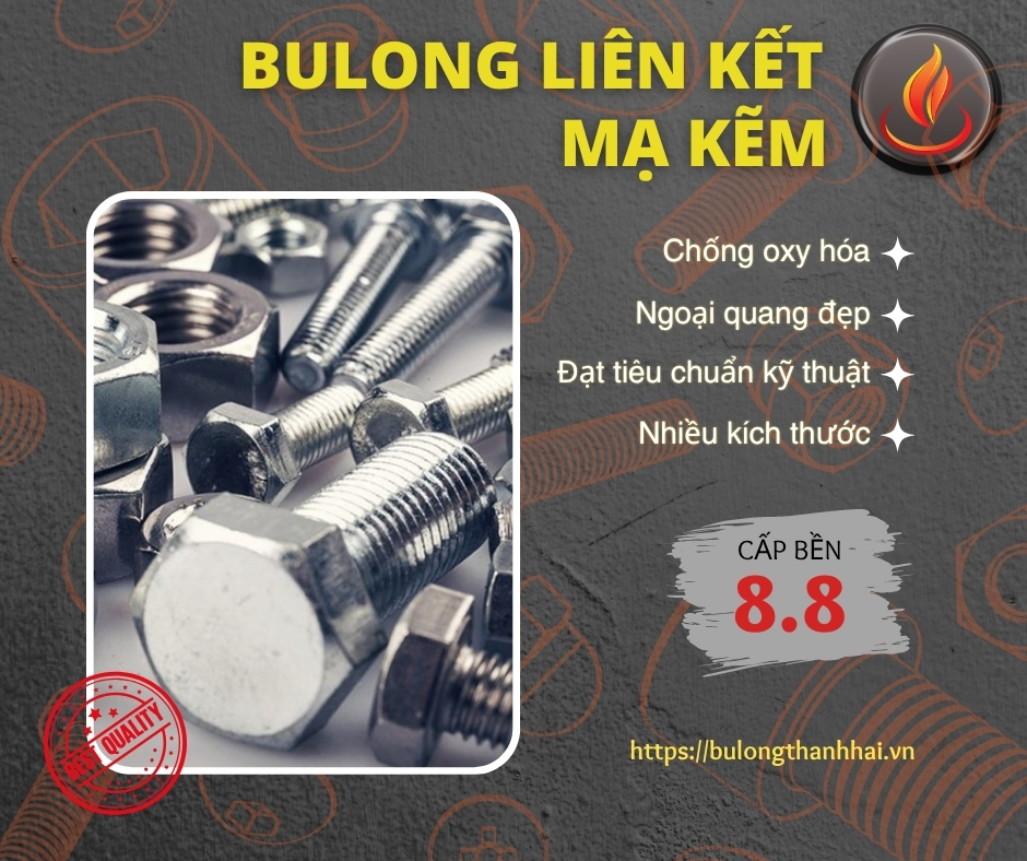 Việc sử dụng lớp mạ kẽm điện phân cho bu lông liên kết cấp bền 8.8 giúp gia tăng đáng kể khả năng chống oxy hóa và tăng tuổi thọ sản phẩm trong môi trường khắc nghiệt.